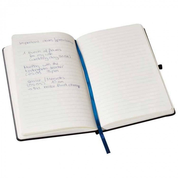 Этот эластичный, пролинованый блокнот формата А5, предлогает достаточно места для Ваших идей.