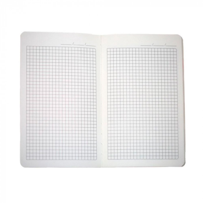 Має 8 перфорованих аркушів. У закритому вигляді блокнот фіксується за допомогою вертикальної гумки-фіксатора одного кольору з палітуркою. Тверда обкладинка зі штучної шкіри.