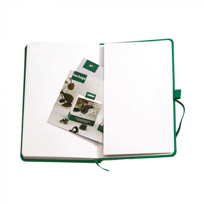 Має 8 перфорованих аркушів. У закритому вигляді блокнот фіксується за допомогою вертикальної гумки-фіксатора одного кольору з палітуркою. Тверда обкладинка зі штучної шкіри.