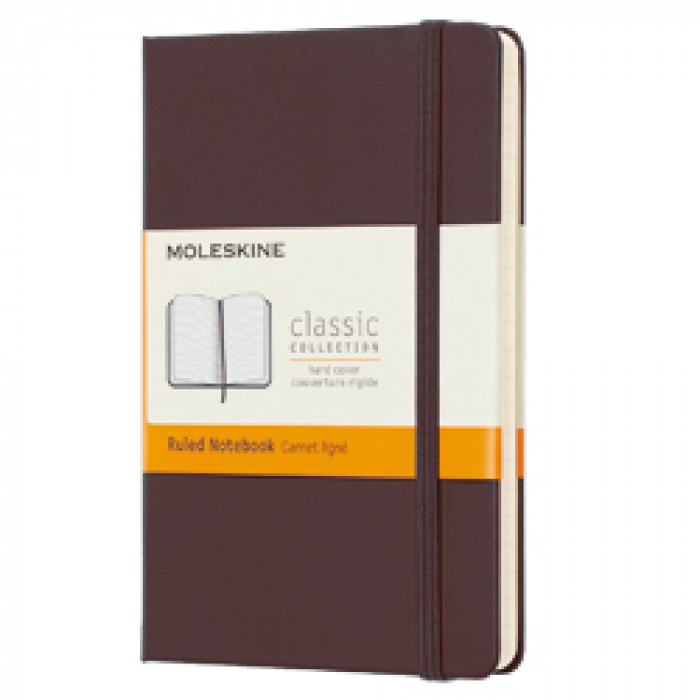 Нотатник з кольоровою твердою обкладинкою Classic. Закруглені кути. Еластична застібка. Фірмовий папір Moleskine кольору слонової кістки. Стрічка-закладка у тон. Папір: 70 г/м2, безкислотний, кольори слонової кістки, в лінійку. Напис "In case of loss" на форзаці. Розширювана внутрішня кишенька ззаду. Всередині історія Молескіна. Компанія Moleskine Srl. випускає та реалізує вироби, сертифіковані Радою зі збереження лісового фонду (Forest Stewardship Council, FSC). 13x21см