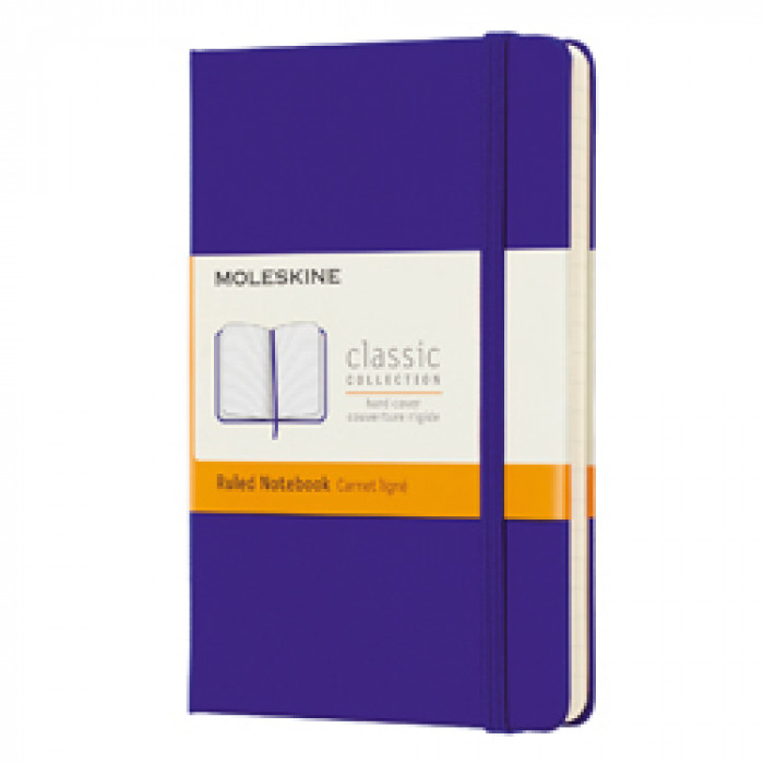 Нотатник з кольоровою твердою обкладинкою Classic. Закруглені кути. Еластична застібка. Фірмовий папір Moleskine кольору слонової кістки. Стрічка-закладка у тон. Папір: 70 г/м2, безкислотний, кольори слонової кістки, в лінійку. Напис "In case of loss" на форзаці. Розширювана внутрішня кишенька ззаду. Всередині історія Молескіна. Компанія Moleskine Srl. випускає та реалізує вироби, сертифіковані Радою зі збереження лісового фонду (Forest Stewardship Council, FSC). 13x21см