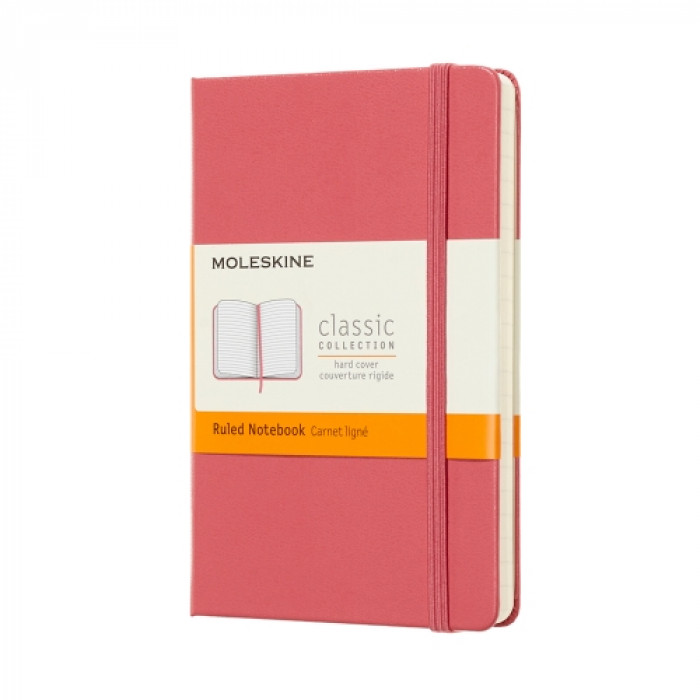 Нотатник з кольоровою твердою обкладинкою Classic. Закруглені кути. Еластична застібка. Фірмовий папір Moleskine кольору слонової кістки. Стрічка-закладка у тон. Папір: 70 г/м2, безкислотний, кольори слонової кістки, в лінійку. Напис "In case of loss" на форзаці. Розширювана внутрішня кишенька ззаду. Всередині історія Молескіна. Компанія Moleskine Srl. випускає та реалізує вироби, сертифіковані Радою зі збереження лісового фонду (Forest Stewardship Council, FSC). 13x21см