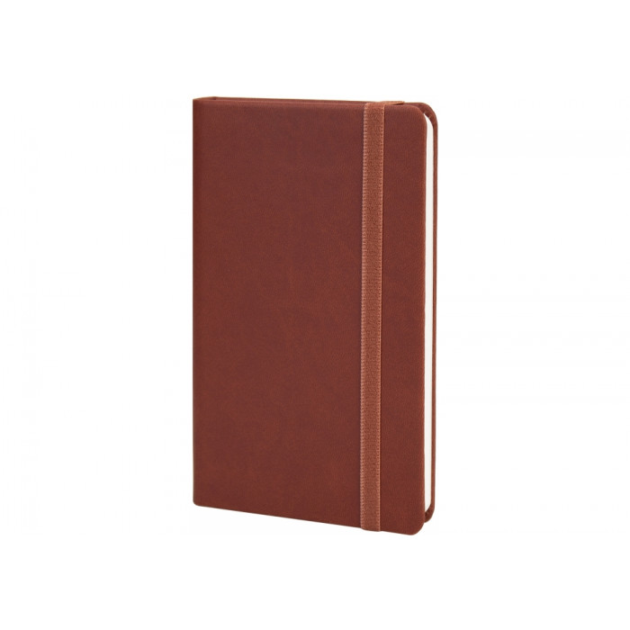 Діловий записник формату А5. Обкладинка: тверда, матеріал - штучна шкіра, колір - коричневий. Внутрішній блок: нелінований, колір паперу - білий, кількість аркушів - 128 (256 сторінок), щільність паперу - 70 г/м2. Обкладинка з гумкою. Виготовлено в Україні.