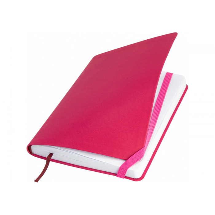Діловий записник формату А5. Обкладинка: м’яка, матеріал - штучна шкіра, колір - рожевий. Внутрішній блок: лінія, колір паперу - білий, кількість аркушів - 128 (256 сторінок), щільність паперу - 70 г/м2. Обкладинка з гумкою. Виготовлено в Україні.