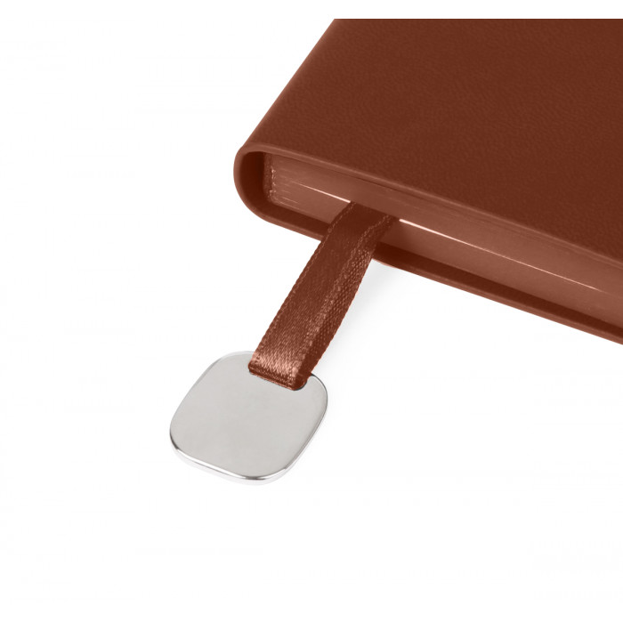 Записна книжка в м'якій обкладинці, з закладкою та металевим елементом. Розмір металевого елемента 17 х 20мм. Кремовий папір у клітинку. Торці пофарбовані у колір обкладинки