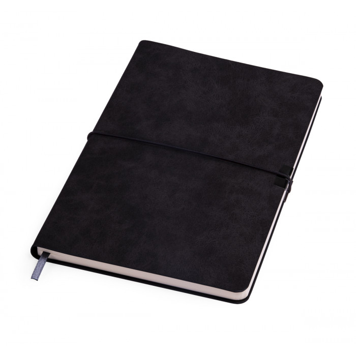 Записна книжка в м'якій обкладинці, з фіксуючою резинкою та металевим елементом. Кремовий папір у лінійку