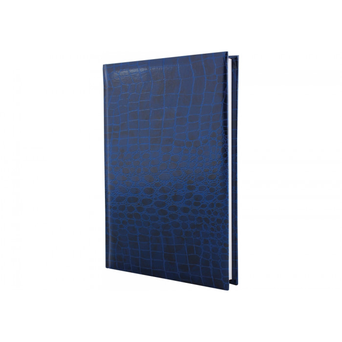 Ежедневник недатированный, А6, Croco. Материал балакрон, фактура под кожу крокодила. Подходит для любого вида тиснения. Обложка не меняет цвет при тиснении. Формат: А5 Количество страниц – 320. Информационный блок – 9 страниц. Телефонная книга. Цвет бумаги блока – белый. Цвета печати – синий и черный. Закладка – шелковая лента синего цвета.