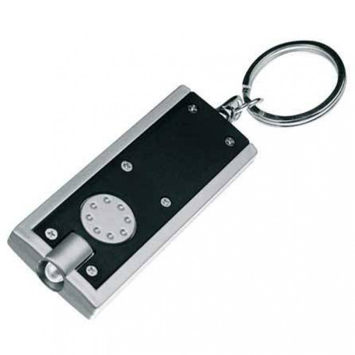 Плоский, прямоугольный брелок для ключей. Оригинальный и стильный дизайн. Имеет встроенный фонарик, светящий белым светом. Рекламный логотип нанесём любым цветом на корпусе брелка.