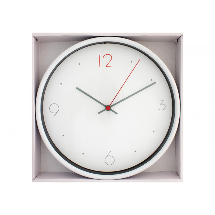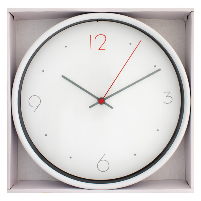 Годинник настінний; класичний дизайн; колір корпусу: білий; колір циферблату: білий; діаметр - 25,5 см; тип механізму: кварцовий; елемент живлення: батарея типу АА х 1 шт (батарейка до комплекту не включена); завдяки зручному механізму швидко розбираються/збираються.
