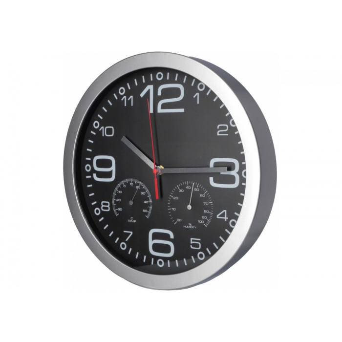 Годинник настінний пластиковий Optima CHRONO з термометром та гігрометром, чорний