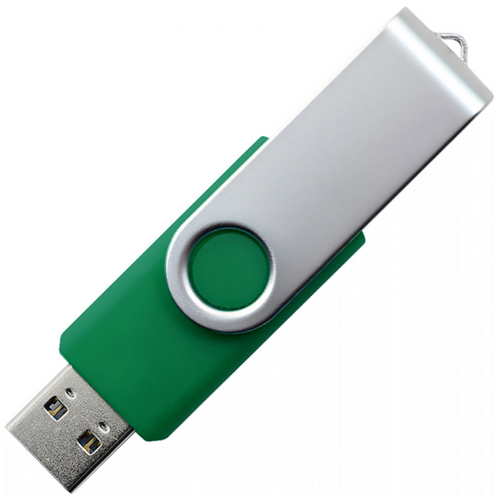 USB флеш-накопитель Twister зеленого цвета – пионер в мире сувенирных флешек. История этой модели начинается в далеком 2005 году. Эти USB флешки воплотили в своем корпусе удобство и практичность в использовании, что позволило им оставаться бессменным лидером на протяжении десятилетия. Имеющаяся поворотная скоба позволяет не только присоединить флешку к связке ключей и надежно защитить USB разъем, но и предоставляет возможность нанести на эту площадь корпоративный логотип, делая этот маленький и незаменимый гаджет очень креативным рекламоносителем и сувениром. Корпус флешки представляет собой комбинацию двух самых распространенных материалов: пластика и металла. При этом мы предоставляем возможность выбора цвета металлической скобы. Стандартный цвет металлической скобы выполненный в серебристом цвете. Опционально Вы можете остановить свой выбор на скобе черного, красного, синего, зеленого или золотистого цвета.