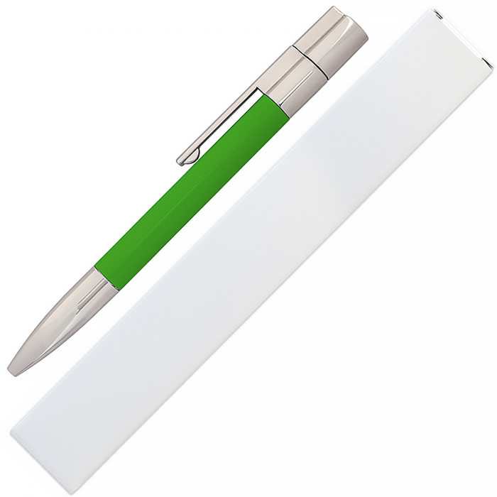 USB флеш-накопитель в виде шариковой ручки зеленого цвета (модель 1133-5) - это консервативный usb-накопитель. Он подойдет под любой стиль в одежде, станет неотъемлемым и строгим в исполнении корпоративным «инструментом». С одной стороны, это будет пишущее устройство, которое выручит Вас на важной сделке или на презентации. А с другой стороны – это цифровой носитель, на который Вы сможете сохранить самую важную и полезную для Вас информацию. Корпус флешки выполнен из комбинированного материала (пластик-металл), но имеет легкий вес и компактные размеры. Ее легко носить с собой, закрепляя фиксирующим элементом на кармашке пиджака или папке для бумаг. Опционально Вы можете выбрать синий или черный цвет чернил.
