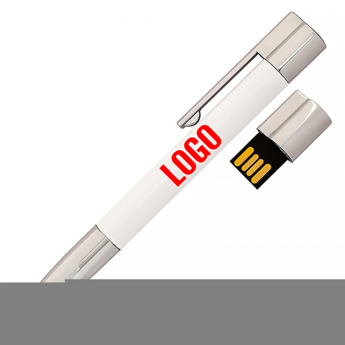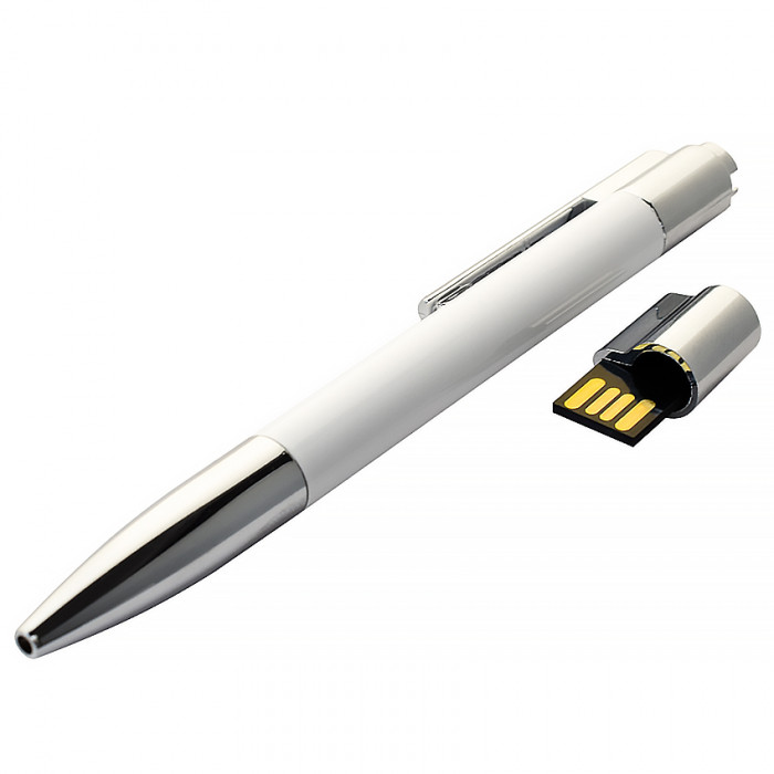 USB флеш-накопитель в виде шариковой ручки белого цвета (модель 1133-1) - это консервативный usb-накопитель. Он подойдет под любой стиль в одежде, станет неотъемлемым и строгим в исполнении корпоративным «инструментом». С одной стороны, это будет пишущее устройство, которое выручит Вас на важной сделке или на презентации. А с другой стороны – это цифровой носитель, на который Вы сможете сохранить самую важную и полезную для Вас информацию. Корпус флешки выполнен из комбинированного материала (пластик-металл), но имеет легкий вес и компактные размеры. Ее легко носить с собой, закрепляя фиксирующим элементом на кармашке пиджака или папке для бумаг. Опционально Вы можете выбрать синий или черный цвет чернил.