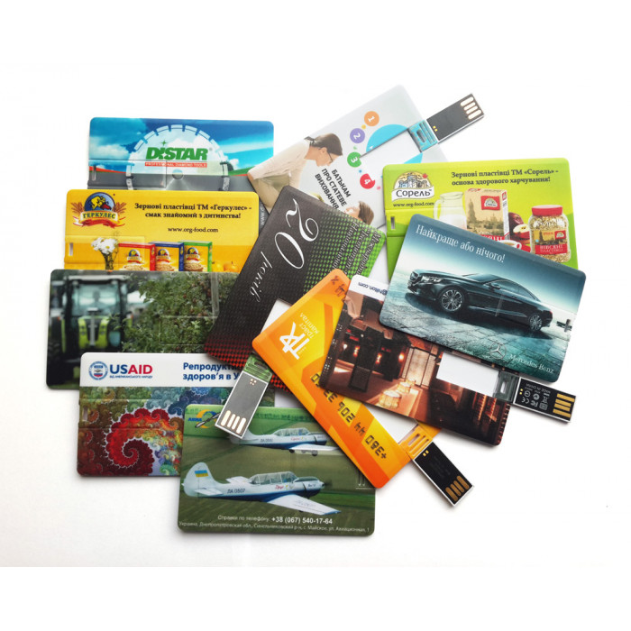 Флеш-накопитель в виде кредитной (банковской) карточки - цифровой носитель, который не затеряется в кармане, не будет спутан с другими картами и не испортит Ваш имидж делового человека. Визуально такие устройства представляют собой обычную кредитку. Контуры флешки в максимальной точности повторяют габариты банковской карты – такие же компактные и приятные на ощупь. На их корпусе можно разместить любую текстовую и графическую информацию. Места на таком устройстве предостаточно. И это будет хорошим маркетинговым инструментом в руках Ваших коллег, партнеров, инвесторов или клиентов. На такие временные носители можно сохранить презентацию или фильм о компании, уникальное коммерческое предложение или список потенциальных инвесторов – то, что важно именно Вам.