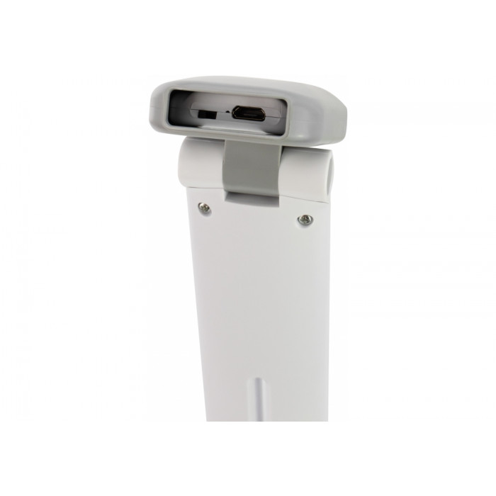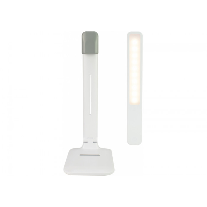 20 яскравих, енергоефективних SMD LED ламп з тривалим строком експлуатації. Висота лампи легко змінюється. Лампа легко відокремлюється від основи і може використовуватись як окремий освітлювальний пристрій. Має акумулятор (вбудована зарядна літієва батарея потужністю 600 мА/г). Стильний та гнучкий дизайн дозволяє легко регулювати кут нахилу лампи. Кнопка увімкнення / вимкнення, регулювання кольору світла та яскравості. Магніти на зворотній стороні лампи дозволяють фіксувати її на металевих поверхнях. Застосування: для читання, навчання, в побуті, офісі та на вулиці, тощо.