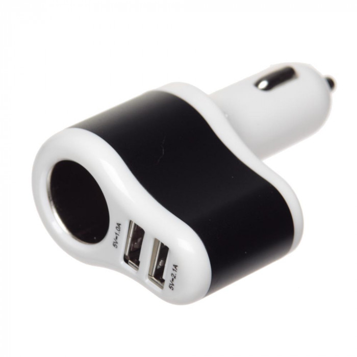 Автомобільний зарядний пристрій 2 порти USB 2.0 + розгалужувач