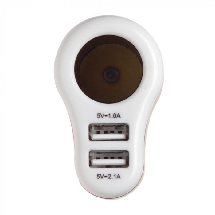 Автомобільний зарядний пристрій 2 порти USB 2.0 + розгалужувач