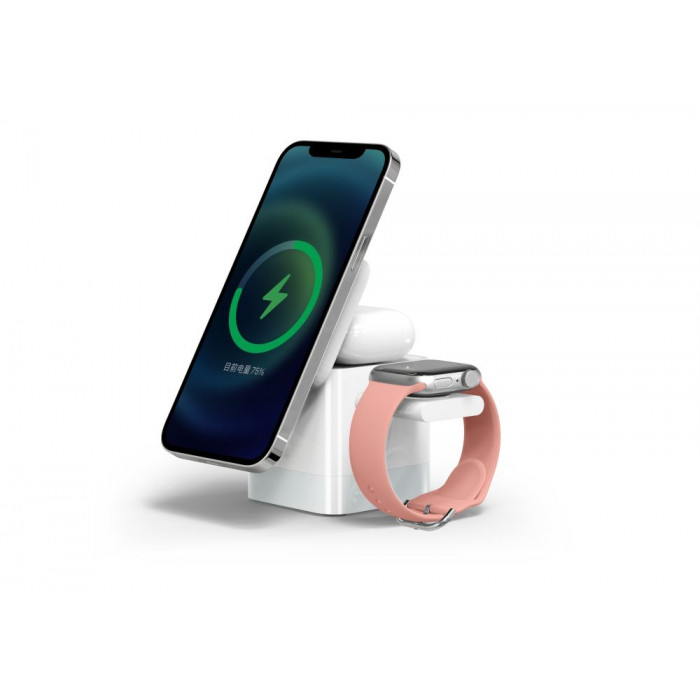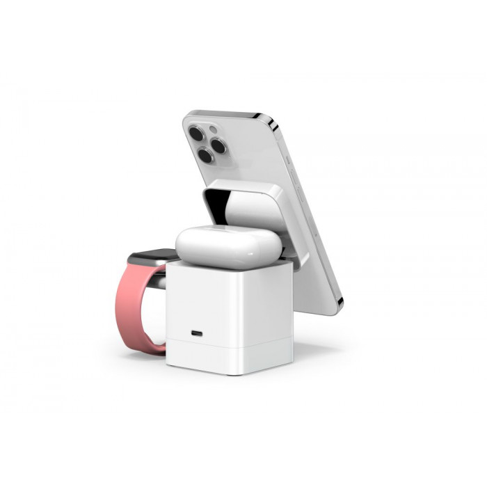 Модель призначена для заряджання смартгодинника, мобільного телефону та навушників. Одночасно може заряджати 2 гаджети. Вхідний інтерфейс – Type-C.