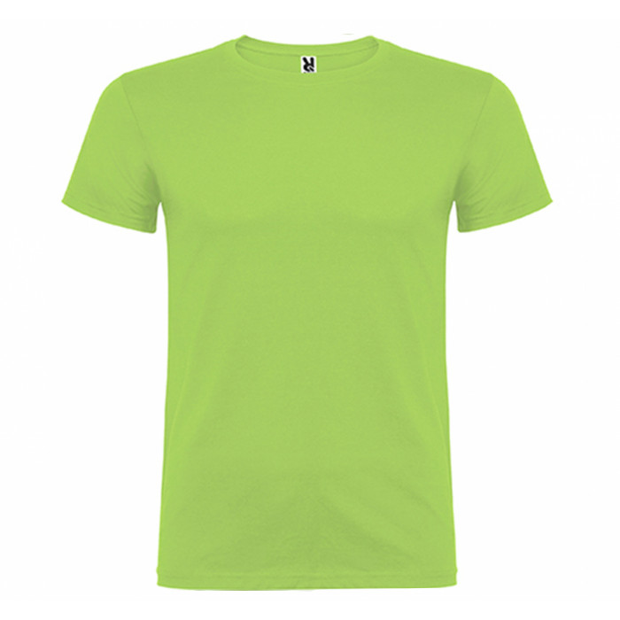 Футболка з короткими рукавами та подвійною круглою горловиною з еластаном. Трубчаста тканина в розмірах для дорослих і бокові шви в розмірах для дітей. Посилені закриті шви горловини.