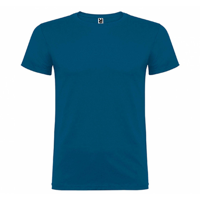 Футболка з короткими рукавами та подвійною круглою горловиною з еластаном. Трубчаста тканина в розмірах для дорослих і бокові шви в розмірах для дітей. Посилені закриті шви горловини.