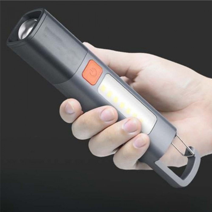 Оснащений XPE LED лампочкою та 7 світлодіодами SMD, ліхтарик забезпечує максимальну яскравість до 200 люменів. XPE LED забезпечує тривалу роботу в режимі High протягом 4-6 годин. Ліхтарик має 3 режими роботи: яскраве світло, стробоскоп, бічне світло COB, що дозволяє вибрати оптимальний рівень освітлення для будь-якої ситуації.