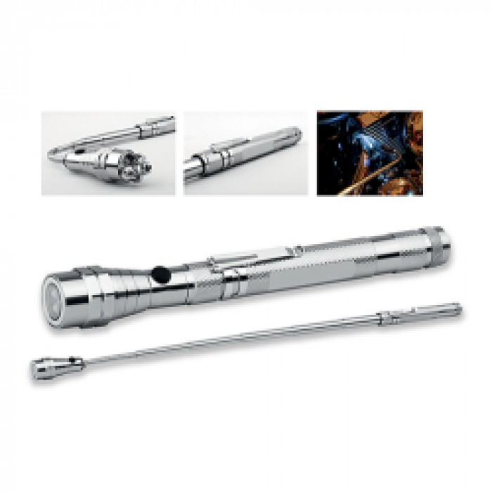 Ліхтарик телескопічний із магнітом та затиском, срібло