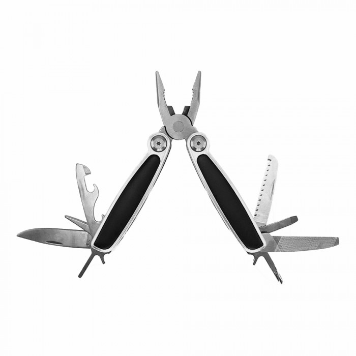 Під одним корпусом зібрані інструменти, які можуть здійснювати 11 різних функцій: плоскогубці, кусачки, два ножі, відкривачка для пляшок, відкривачка для консервів, дві шліцьові викрутки Sl, одна хрестова викрутка Ph, напилок і пилка.