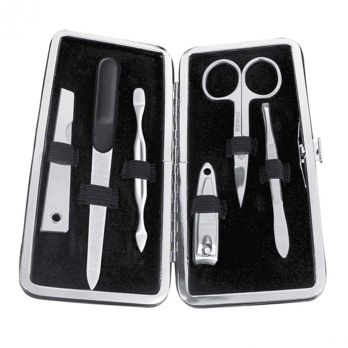 Набор для маникюра из коллекции CrisMa, состоящий из ножниц, щипчиков, пинцета, пилочки и приборов для очистки ногтей и удаления кутикул. Приборы упакованы в элегантном, твёрдом футляре, выполненном из имитации кожи.