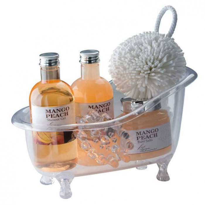 Набор для мытья с запахом манго и персика: гель для ванн (280мл), гель для душа (280мл), соль для ванны (220мл) губка и массажёр.
