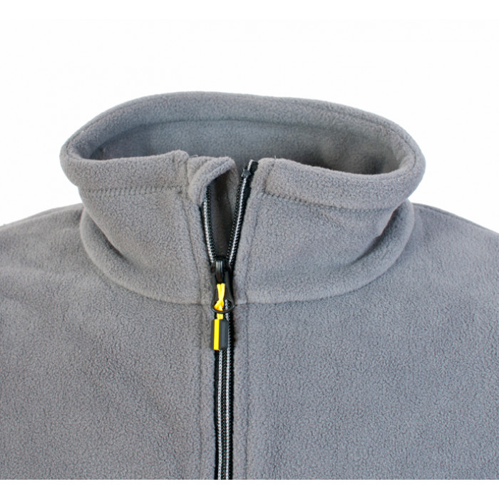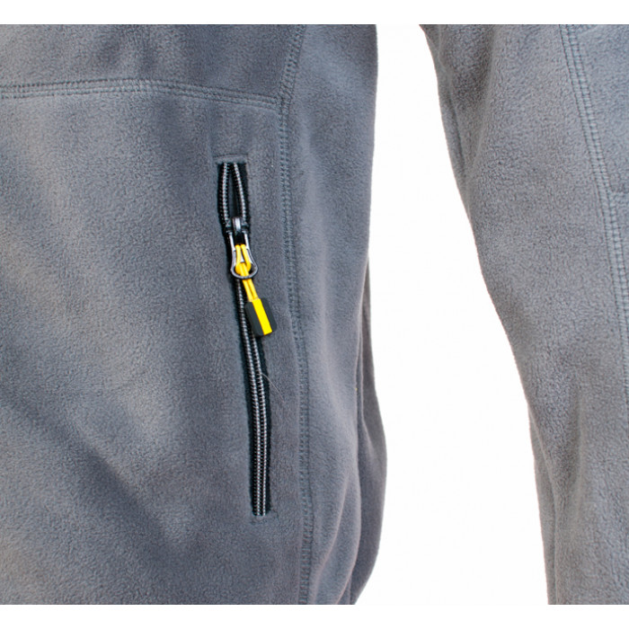 Флисовая толстовка с застежкой-молнией и двумя карманами спереди (также на молниях). Декоративные плоские швы. Есть возможность подобрать цвет хлястиков на молнии так, чтобы он