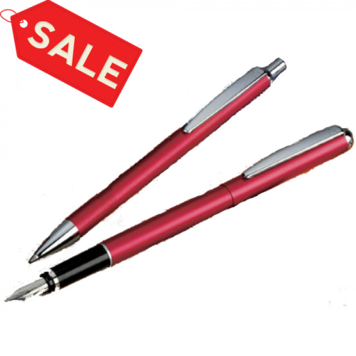 Металлическая перьевая ручка и автоматическая шариковая ручка в блистере. Материал - матовый металл, хромированные элементы