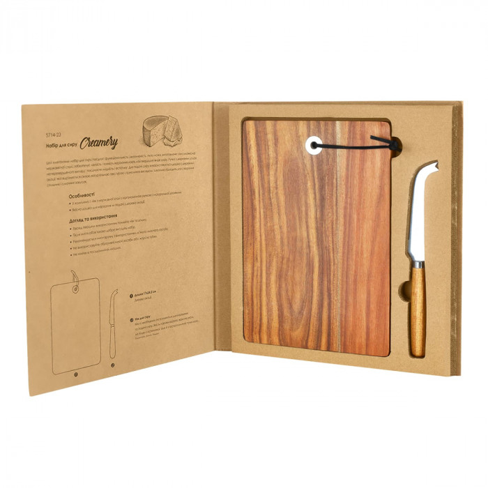 Матеріал: нержавіюча сталь, дерево Розмір дошки: 24,5 x 17 x 11,5 см Розмір ножа: 22,3 см