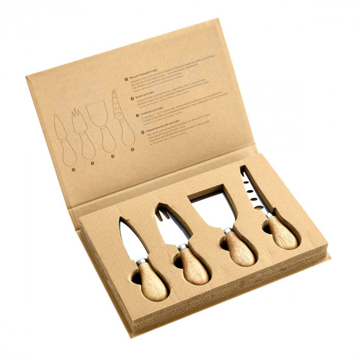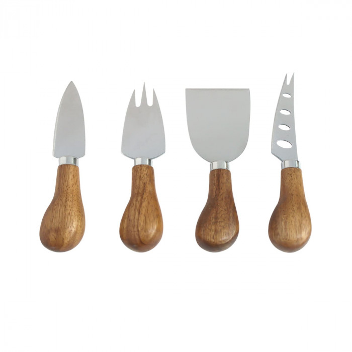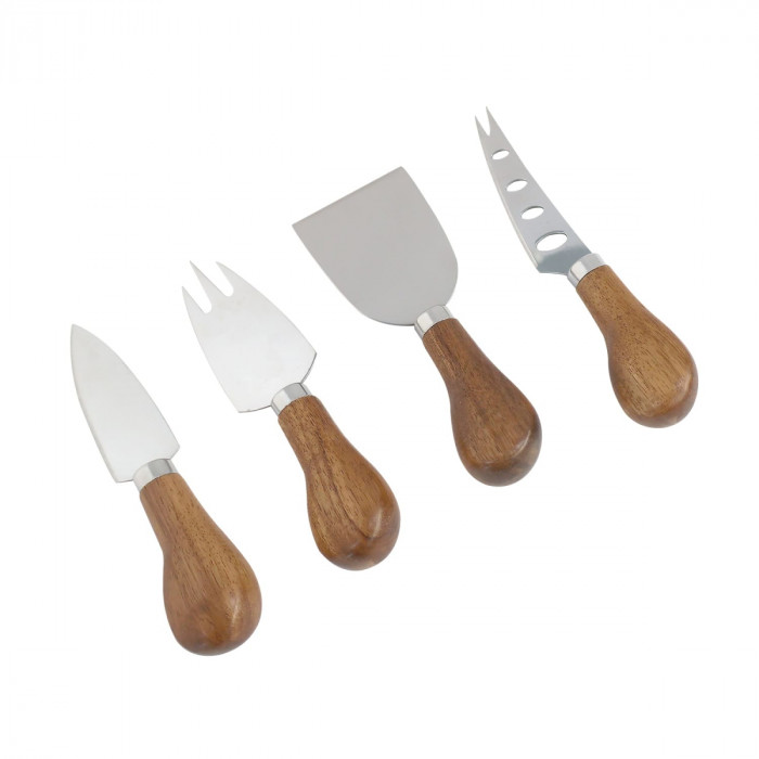 Матеріал: нержавіюча сталь, дерево Розмір: 1 ніж для твердого сиру: 13,4 см 1 виделка: 13,4 см 1 слайсер для сиру: 13 см 1універсальний ніж для сиру: 14,5 см