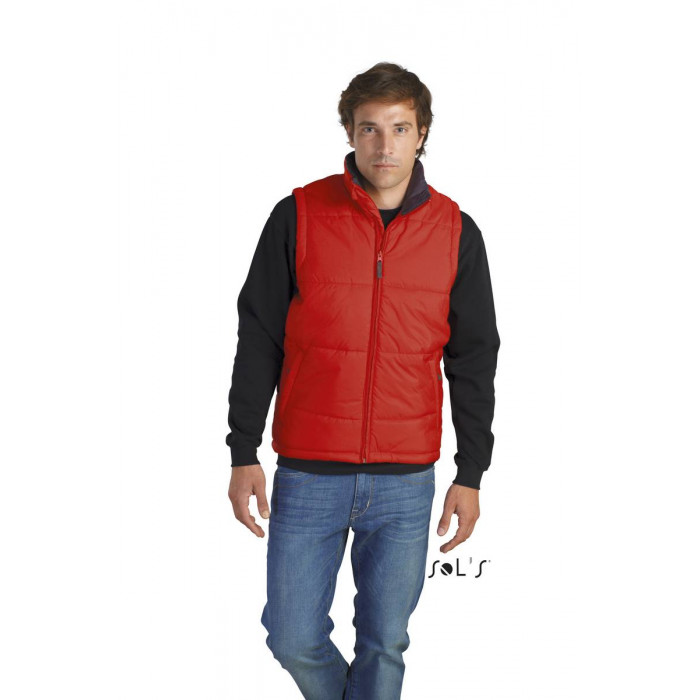 Стеганый жилет унисекс SOL’S WARM. Замок на молнии с брелоком, 2 кармана. Материал: Лицевая сторона: 100% нейлон 210T с водостойкой пропиткой, подкладка из 100% полиэстера, 190T воротник и само изделие на подкладке из нейлона 190T контрастного темно-серого цвета, подбитой утеплителем из полиэстера 220 г/м2.