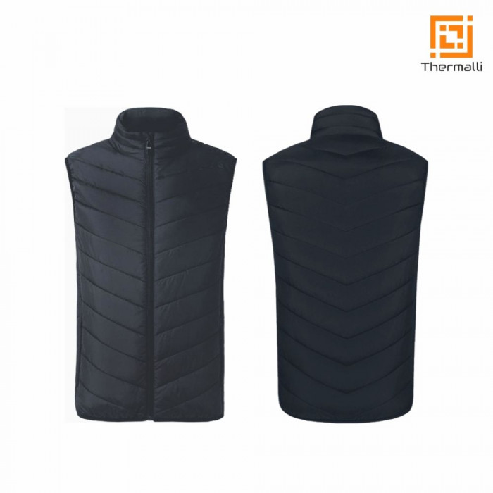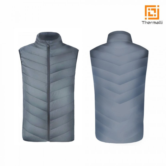 Жилет має прямий крій та легку набивку. Зовнішній шар моделі простьобаний. Комір-стійка забезпечує надійний захист. Жилет характеризується вітро- та водовідштовхуючими властивостями.