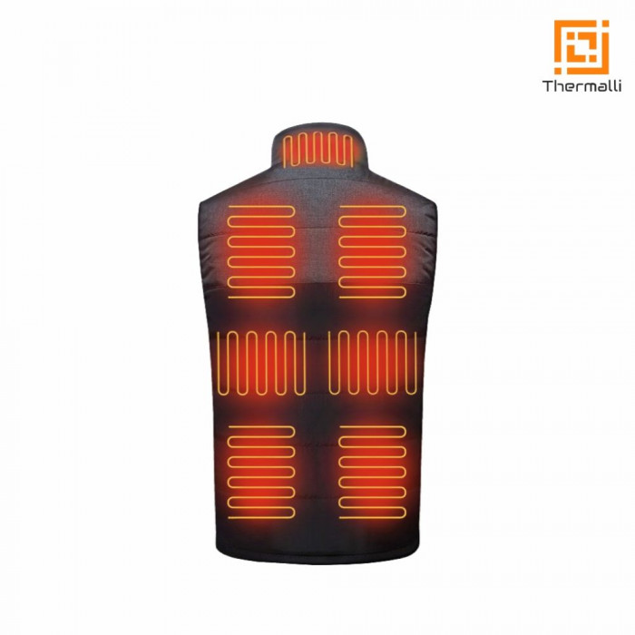 Жилет досить потужно генерує тепло, виріб має 9 зон нагріву. Спереду на рівні живота вмонтовані 2 зони обігріву, 1 зона – на комірі й 6 зон розміщені на спинці виробу.