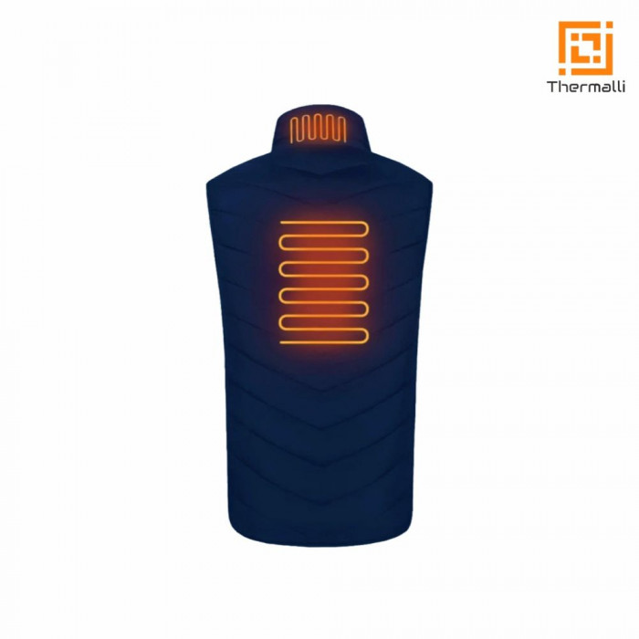 Жилет має 4 зони нагріву – спереду справ й зліва, на комірі та на спинці. Вуглецеві нагрівальні елементи працюють від будь-якого зовнішнього акумулятора (павербанк в комплект не входить).