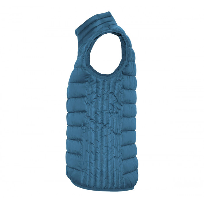 Жіночий жилет, водовідштовхувальний та вітронепроникний 100% поліестер , дві зовнішні кишені , набивка 100% поліестер з ефектом пера, воріт високий з захистом для підборіддя, внутрішня підкладка поліестер. В комплекті мішок зі шнурком в який легко складається жилет.