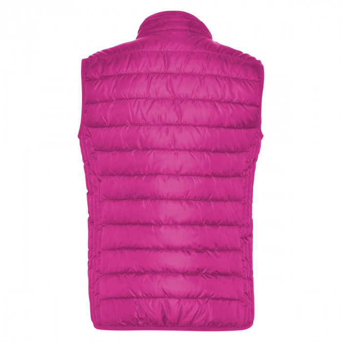 Жіночий жилет, водовідштовхувальний та вітронепроникний 100% поліестер , дві зовнішні кишені , набивка 100% поліестер з ефектом пера, воріт високий з захистом для підборіддя, внутрішня підкладка поліестер. В комплекті мішок зі шнурком в який легко складається жилет.