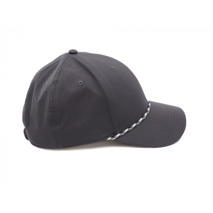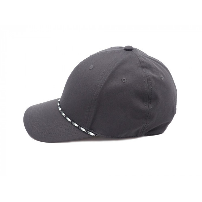 Особливістю цієї кепки є декоративна мотузка на маківці, яка додає їй унікальності та стилю. Кепка має низький профіль, вигнутий козирок та гумову застібку на липучці для легкого регулювання об’єму. Люверси оздоблені вишивкою в тон основного матеріалу.