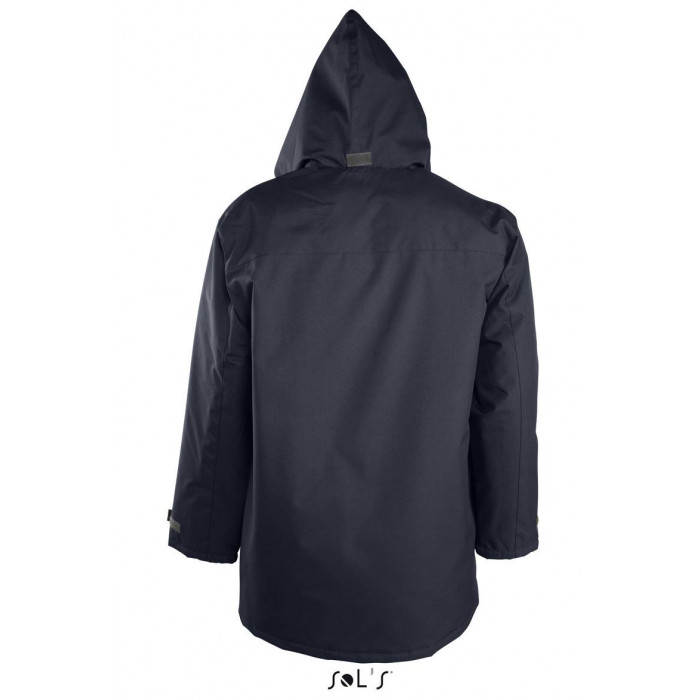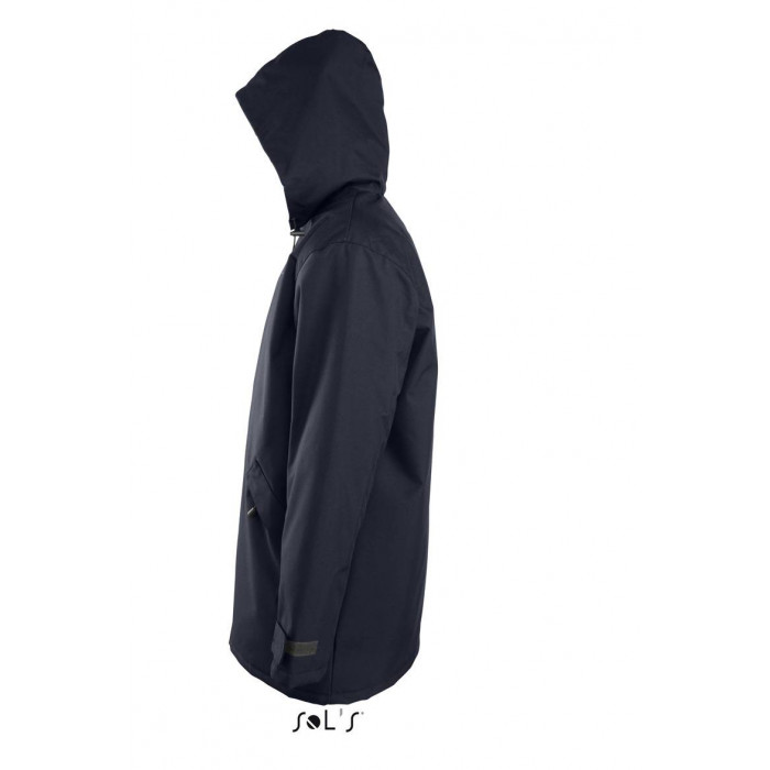 Куртка на стеганой подкладке SOL’S RIVER. Застежка на планке с молнией SBS, на липучках и скрытых кнопках. Манжеты с липучками на планках. Капюшон и стягивающий шнурок складываются в воротник. 2 внутренних и 2 внешних кармана. Отделка воротника из черного мольтона. Материал: ОКСФОРД, 100% полиэстер; подкладка: стеганый полиэстер.