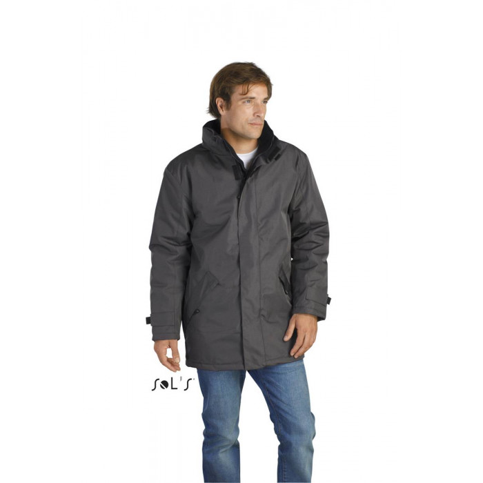 Куртка на стеганой подкладке SOL’S RIVER. Застежка на планке с молнией SBS, на липучках и скрытых кнопках. Манжеты с липучками на планках. Капюшон и стягивающий шнурок складываются в воротник. 2 внутренних и 2 внешних кармана. Отделка воротника из черного мольтона. Материал: ОКСФОРД, 100% полиэстер; подкладка: стеганый полиэстер.
