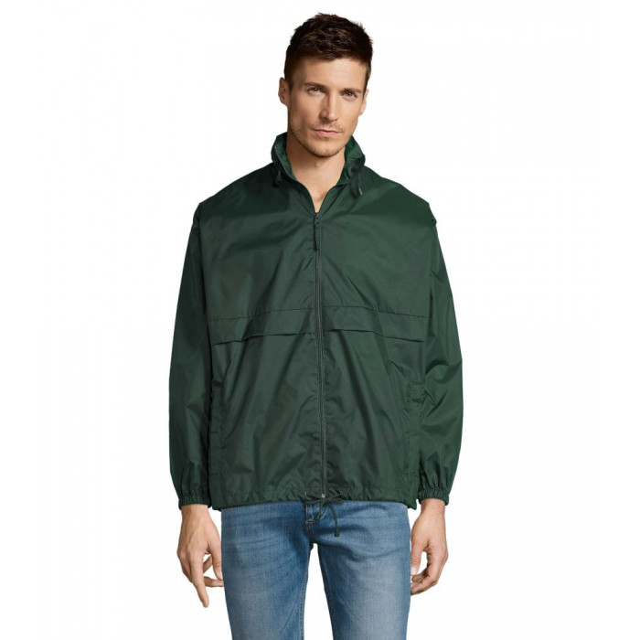 Ветровка унисекс непромокаемая SOL’S SURF. Стиль: классический. Застежка-молния, капюшон и стягивающий шнурок складываются в воротник, 2 наружных кармана на молниях, ветровка может быть сложена в карман и закреплена эластичным ремнем на талии; манжеты на резинке; вентиляционные отверстия по низу изделия шнурок. Материал: 100% нейлон 210T, непромокаемая. Вариант для детей: SURF KIDS-32300, стр. 123.
