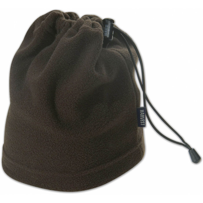 Комбинированная шапка-хомут. Затягивается с помощью гибкого шнурка.