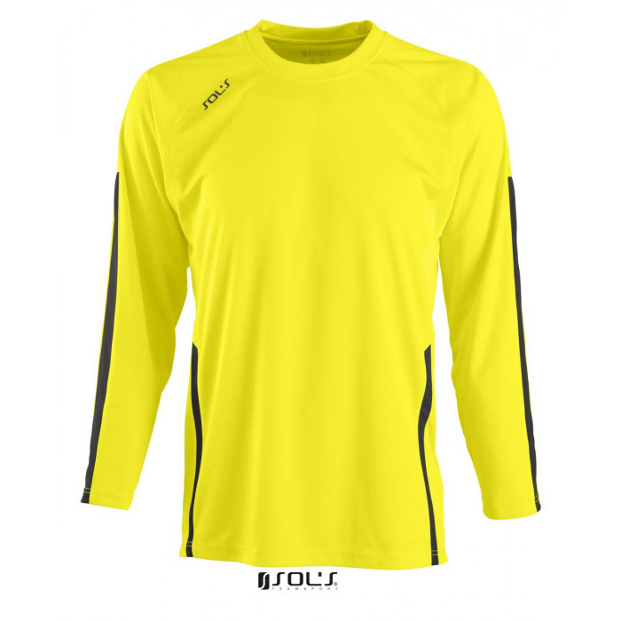 Футболка с длинным рукавом SOL’S WEMBLEY LSL. Модель с круглым воротом и рукавом реглан снабжена перфорированными вставками спереди, на спине и на рукавах. Задний край закруглен и слегка удлинен. Длинный рукав. Вышитый контрастной нитью логотип. Материал: Интерлок, полиэстер 100%. Удельный вес: 140 г/кв.м.