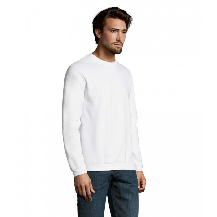 Свитшот; Мольтон с начесом, 50% хлопок - 50% полиэстер, укрепляющая тесьма по вороту, манжеты, ворот и низ изделия связаны резинкой с эластаном; Втачной рукав.