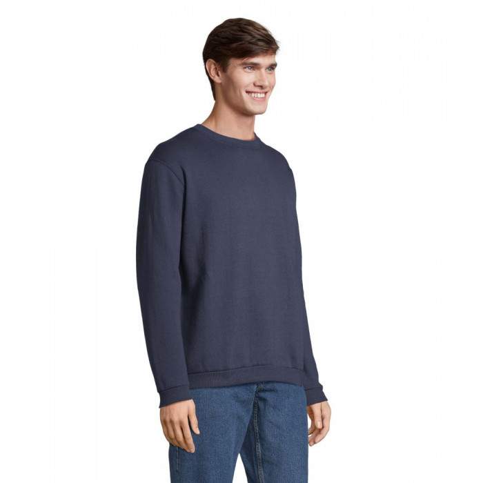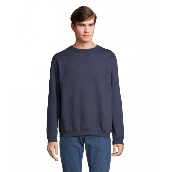 Свитшот; Мольтон с начесом, 50% хлопок - 50% полиэстер, укрепляющая тесьма по вороту, манжеты, ворот и низ изделия связаны резинкой с эластаном; Втачной рукав.