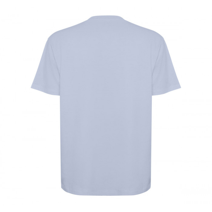 Оверсайз футболка з коротким рукавом. Круглий комір, оздоблений ребром 2x1, з відповідними швами. Бічні шви. Широка подвійна строчка на рукавах і подолі.