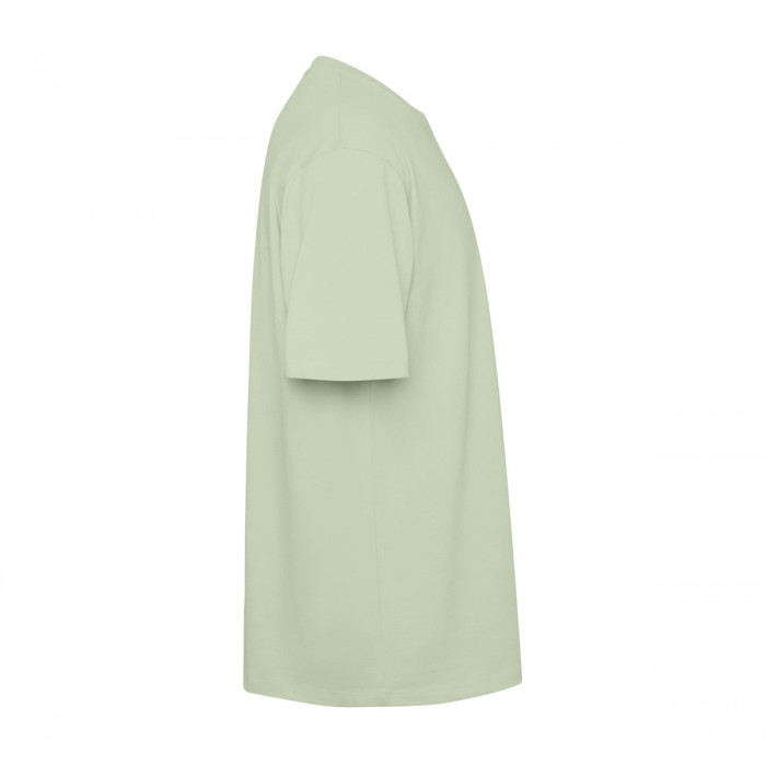 Оверсайз футболка з коротким рукавом. Круглий комір, оздоблений ребром 2x1, з відповідними швами. Бічні шви. Широка подвійна строчка на рукавах і подолі.