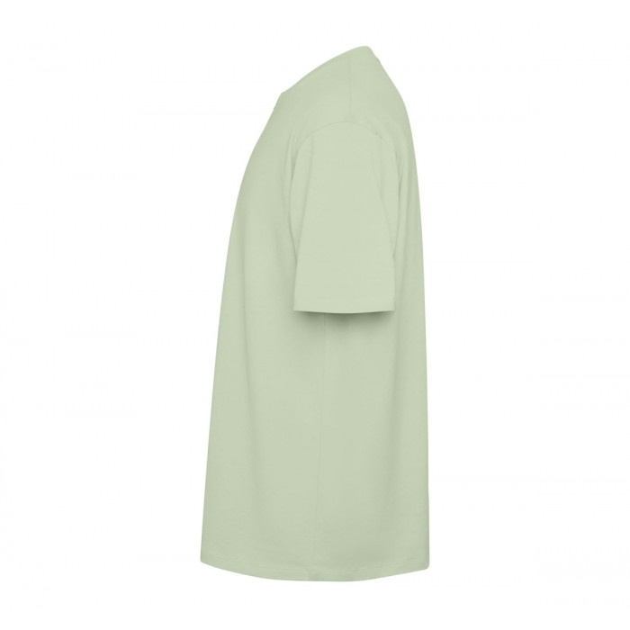 Оверсайз футболка з коротким рукавом. Круглий комір, оздоблений ребром 2x1, з відповідними швами. Бічні шви. Широка подвійна строчка на рукавах і подолі.